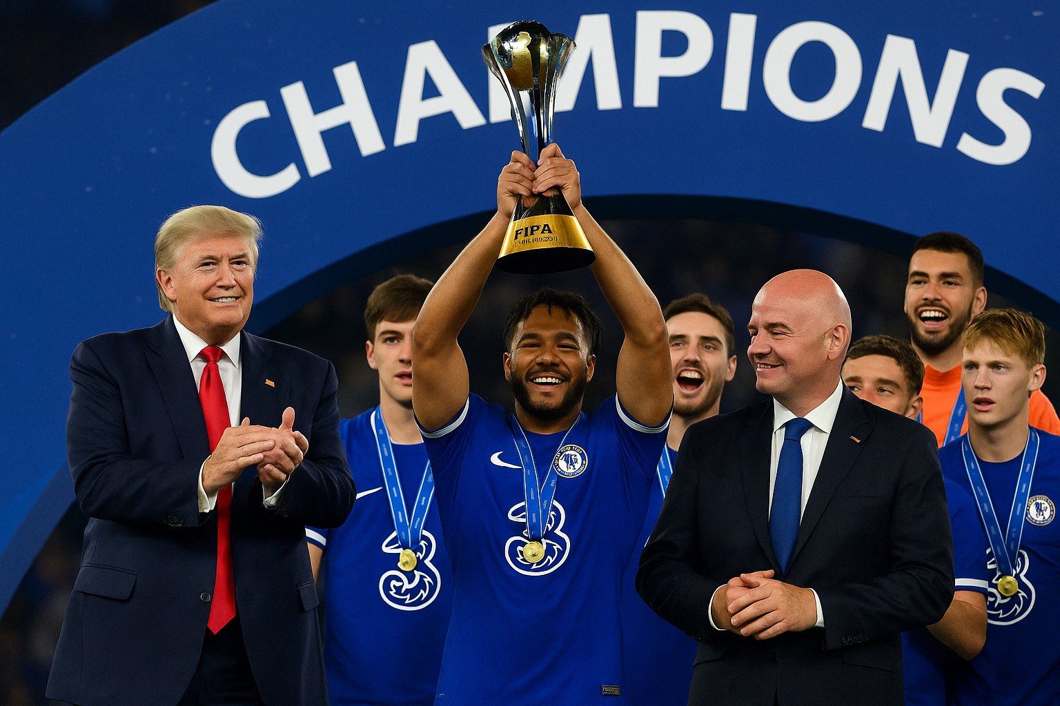 Na prepunom stadionu MetLife u Nju Džersiju, Tramp je zajedno sa predsednikom FIFA-e Đanijem Infantinom predao trofej kapitenu Čelsija Risu Džejmsu. Međutim, umesto da se povuče sa bine, kako to protokol nalaže, Tramp je odlučio da ostane i tokom samog podizanja trofeja — u kadru, nasmejan i u prvom planu.